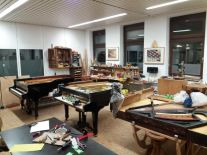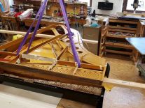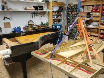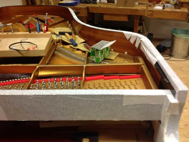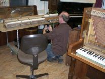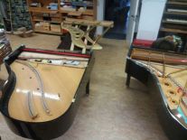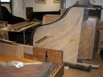 - Klavier / Flügel in alle Teile zerlegen, Reparieren bzw. Ersetzen des Resonanzbodens, der Stege, Stimmstock sowie aller substantiell nötigen Bauteile. Ersetzen aller Saiten und Stimmnägel.