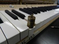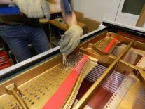 Das Spielwerk und die Tasten werden ausgebaut und in der eigenen Klavierwerkstatt gründlich überholt: Reinigen und Austauschen von Bauteilen nach Bedarf, Hämmer abziehen und Einstellen des hochsensiblen Spielwerks sowie der Pedalanlage. Ihr Klavier / Flügel wird gestimmt und klanglich ausgearbeitet.